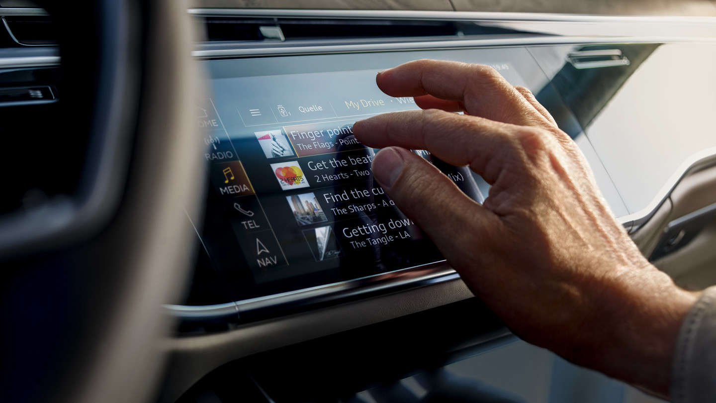 Più completo che mai, il design dei comandi di Audi A8 segue il concetto di uniformità. Ciò è reso possibile dall'uso coerente del display touch che, all’interno di una interfaccia minima, mostra una grande ricchezza di funzioni. La gestione di queste superfici è assolutamente intuitiva: toccando e strisciando con un dito navigherete verso il contenuto desiderato. Quando si seleziona una funzione, si ottengono anche feedback tattili e acustici. Quasi come un pulsante a pressione, ma notevolmente migliore. Molte funzioni possono anche essere gestite interamente a mani libere: per la prima volta l'assistente vocale consente l'utilizzo tramite un dialogo che non è basato su termini predefiniti, ma è orientato a una conversazione più naturale.