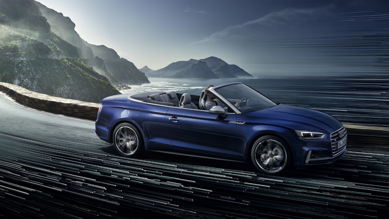 Linee aggressive e dettagli marcatamente sportivi, sono questi gli elementi che contraddistinguono gli esterni della nuova Audi S5 Cabriolet. Il paraurti anteriore più largo e ribassato, le prese d’aria laterali in nero opaco con inserti in alluminio e l’ulteriore presa d’aria inferiore specifica per il modello S donano alla vettura maggiore raffinatezza ed esclusività. Gli inserti alle maniglie esterne delle portiere in alluminio sottolineano l’attenzione per la cura dei dettagli. I proiettori a LED e i gruppi ottici posteriori a LED con indicatori di direzione dinamici garantiscono un’ottima visibilità in ogni situazione e conferiscono alla nuova Audi S5 Cabriolet un look più deciso.
