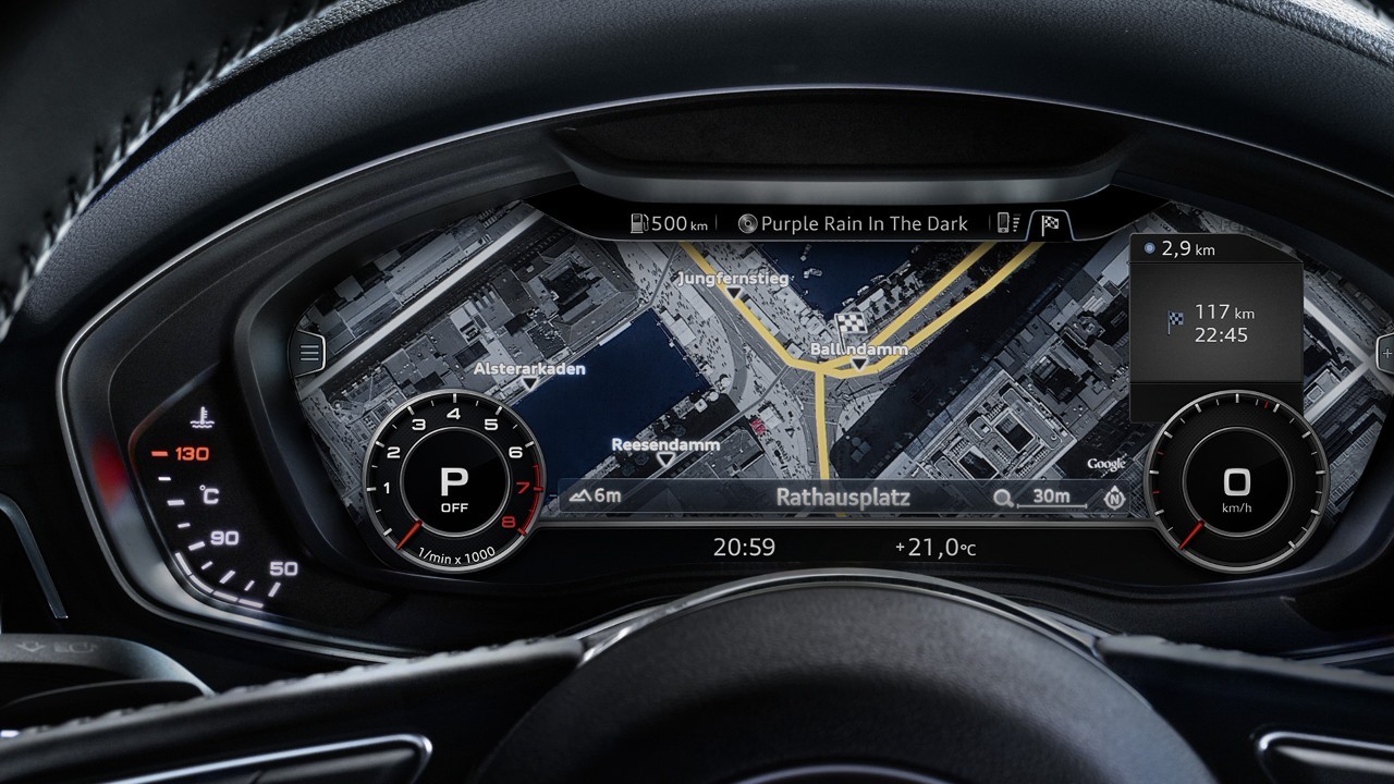 La nuova Audi S5 Cabriolet offre una vasta gamma di equipaggiamenti esclusivi dedicati al modello S pensati per garantire al conducente e ai passeggeri il massimo in termini di comfort e funzionalità. L’Audi virtual cockpit con visualizzazione sportiva (disponibile su richiesta) permette di avere tutte le informazioni più importanti sempre a portata di sguardo. I sedili anteriori riscaldabili elettricamente e i sedili sportivi S in pelle Nappa con regolazione pneumatica e funzione massaggio garantiscono un comfort esclusivo. Il volante sportivo multifunzionale plus in pelle a tre razze, i listelli sottoporta illuminati con logo S e la pedaliera sportiva donano alla nuova Audi S5 Cabriolet un look ancora più deciso.