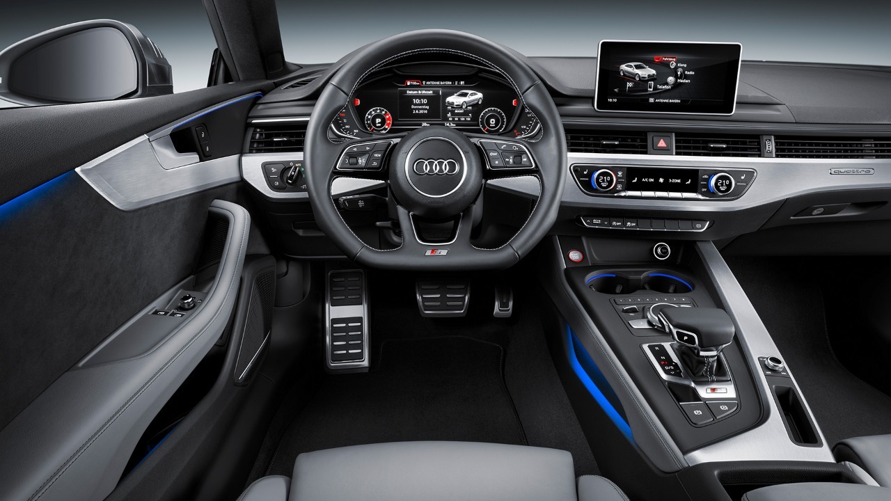 Per la prima volta su Audi S5 Coupé è disponibile a richiesta l’Audi virtual cockpit, il quadro strumenti basato su un display TFT da 12,3 pollici con una risoluzione di 1.440 x 540 pixel. In abbinamento al sistema di navigazione MMI plus con monitor da 8,3 pollici nella consolle centrale si viene così a creare un’unità informativa centrale completa. L’intera logica di comando MMI richiama quella degli attuali smartphone, compresa la ricerca intelligente a testo libero. Il nuovo comando vocale con pronuncia naturale supporta anche l’inserimento di espressioni del linguaggio comune come, per esempio, «Vorrei chiamare Mario». Gli appassionati dell’alta fedeltà possono inoltre optare, a richiesta, per il Bang & Olufsen Sound System con il nuovo suono 3D.