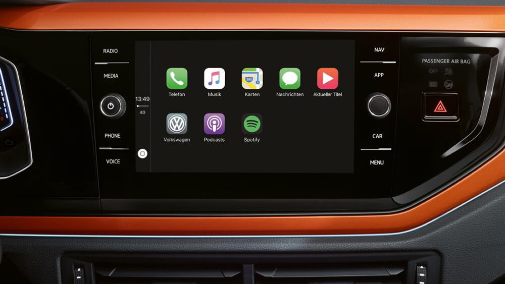 La radio ""Composition Media"", di serie a partire da Comfortline, comandata come uno smartphone mediante uno schermo touchscreen a colori da 8"" in vetro, radio FM, lettore CD/MP3/WMA, ingresso AUX-IN, lettore SD card, porta USB compatibile con prodotti Apple, connessione Bluetooth e sei altoparlanti.