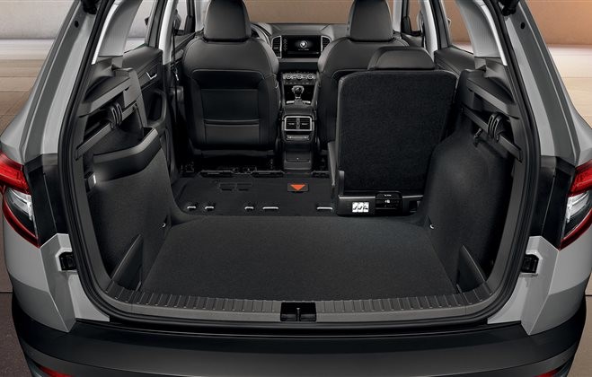 Il vano bagagli di KAROQ offre ottima spaziosità e numerosi pratici elementi che aiutano a tenere in ordine la vettura, impedendo agli oggetti trasportati di muoversi. I modelli equipaggiati con sedili posteriori di serie (con ribaltamento frazionato 40:60) vantano un volume di 521 litri che raggiunge i 1.630 litri con i sedili posteriori reclinati.