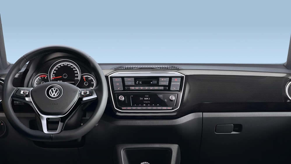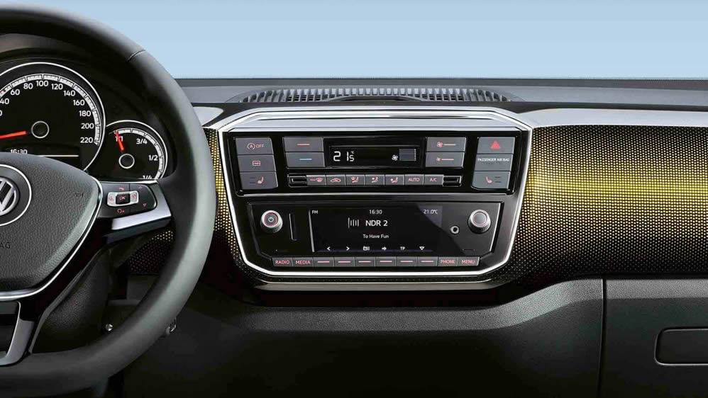 Il climatizzatore automatico Climatronic adegua la velocità della ventola in funzione della velocità di marcia, in modo tale da ridurre il livello di rumorosità. Inoltre attivando la tergitura del parabrezza il sistema commuta automaticamente in modalità ricircolo aria per 30 secondi, in modo tale da evitare che i passeggeri percepiscano odori sgradevoli nell’abitacolo. Nei giorni più caldi il cassetto portaoggetti della up! può essere anche utilizzato come frigobox.